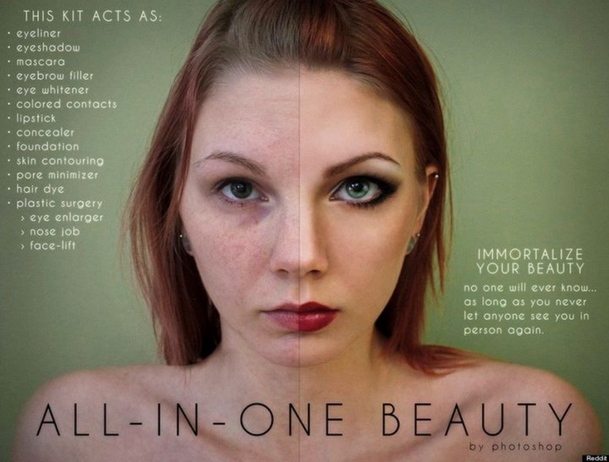 Beauty Companies have spent decades selling products to customers using digitally altered photographs setting unrealistic standards until recently larger organizations like CVS have started to volunteer information when a photo has been digitally altered, with studies showing that it doesn't help the self-esteem of women.⁷